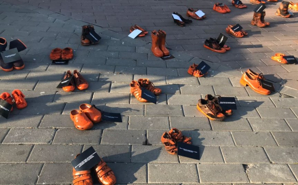 “Принеси пару туфель на знак солідарності із жертвами домашнього насильства” – із таким закликом вчора, 2 грудня на Театральному майдані у Тернополі відбулась інсталяція із 6-ти сотень пар дитячого та жіночого взуття.