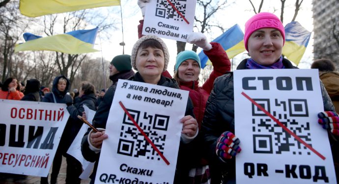 Як повідомляє «Українська правда» учасники акції антивакцинаторів висловлювали свій протест під стінами Верховної Ради, використовуючи QR-код сайту “Єдиної Росії”.