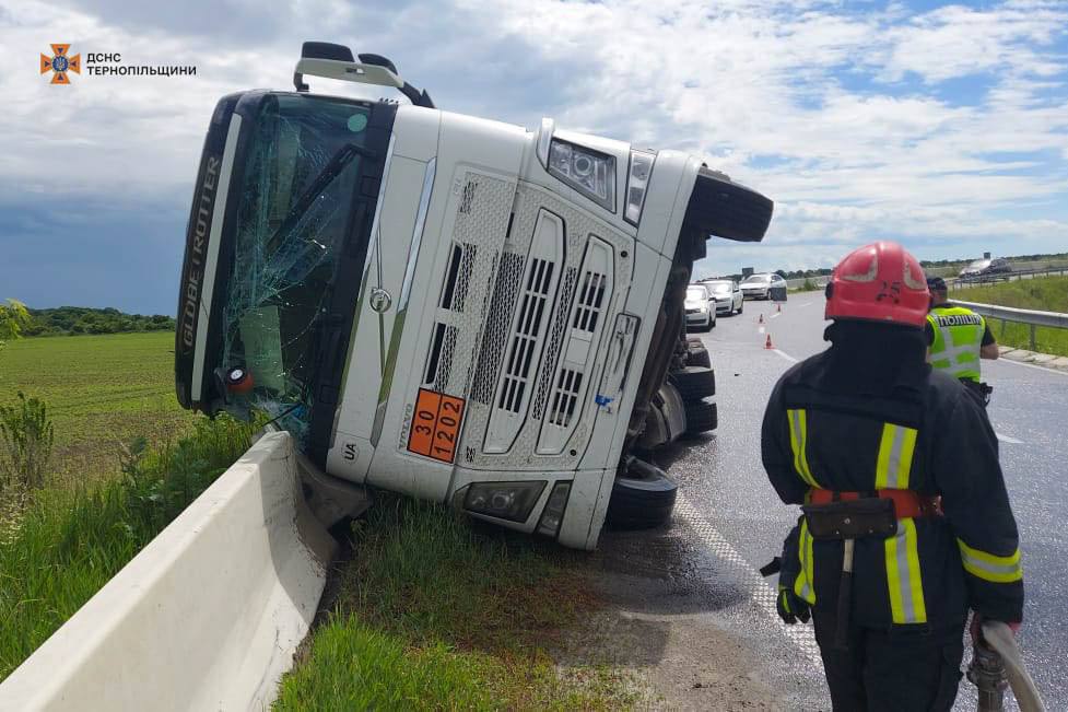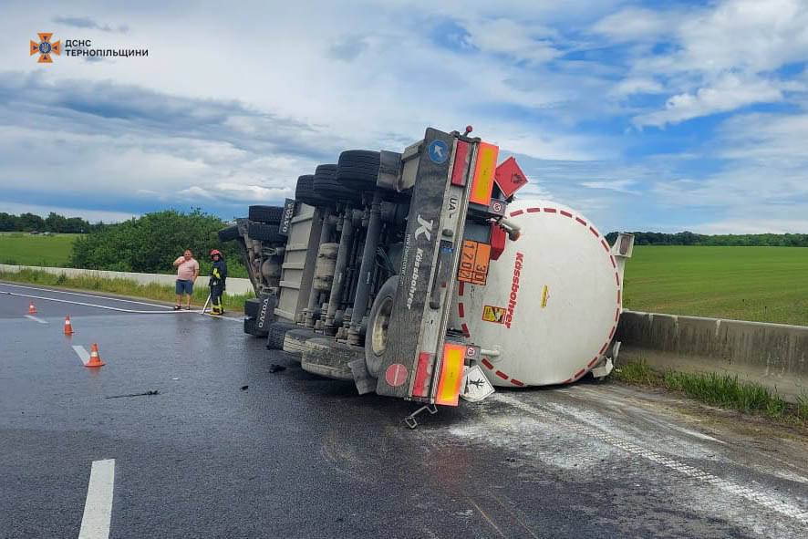На об’їзній дорозі поблизу села Мишковичі, неподалік від Тернополя, сталася серйозна дорожньо-транспортна пригода. Фура, що перевозила паливо, з невідомих поки причин перекинулася на з’їзді з мосту в напрямку обласного центру. Інформація про цю подію була оперативно поширена місцевими жителями в соціальних мережах.