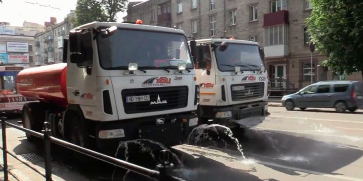 Поливальні машини у спекотні дні курсують у Тернополі