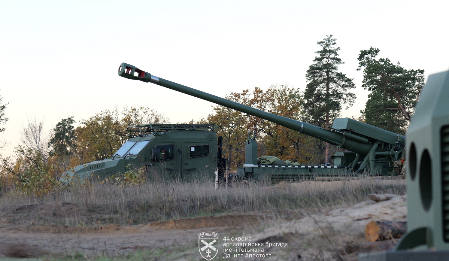 “Це перша українська самохідна установка, створена за стандартами НАТО, 2024 року випуску – образно кажучи, навіть фарба добре не висохла, – з гордістю пояснює військовослужбовець. Вона – автоматична, достатньо дослати снаряд, а решту роботи виконує комп’ютер. Снаряди – закордонні, калібру 155 мм. Вона – натовського зразка, тому все підходить, ствол у неї довший – максимальна дальність польоту снаряда – до 45 кілометрів”.