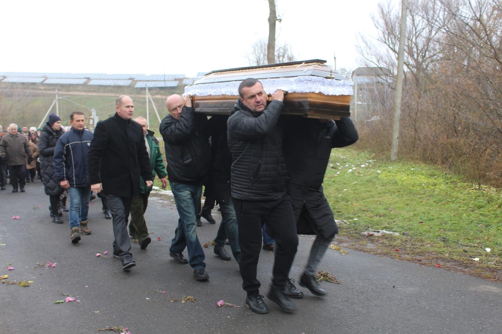 У рідному селі Петра зустріли на колінах вздовж дороги, вистеленої квітами та лампадками. Тіло несли селом до рідної хати, біля воріт якої зустрічав онука дідусь… Як колись зі школи, а сьогодні… з війни, щоб назавжди попрощатися.