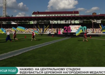 На центральному стадіоні відбувається церемонія нагородження медалістів. Передає Т1 Новини.
